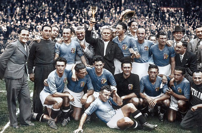 Between us and everyone else, the Jules Rimet Trophy had long been plunged in shady history, since someone first whispered it was not made of solid gold. It seems things started in Italy, the World Cup winner in 1934 and 1938. With Mussolini in power, the Italian team made their fascist salute at the beginning of each match (I will not reproduce these photos here), and were a strong contender for the third win and the title of eternal keeper of the cup.