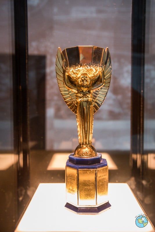 After Brazil won the Jules Rimet Cup for the third time and kept the trophy, there was the natural need of a new FIFA trophy. The second official trophy, cuddled and canoodled by winners of the World Cup since 1974, and making an appearance on TT’s credenza, was dryly named FIFA World Cup Trophy, and depicts two people holding a globe. The Stabilimento Artistico Bertoni, in Italy, made the trophy which weighs just over 6 kg, has malachite bands at its base, and cost the bagatelle of US$242,700 back then (equivalent of over €1.4 million today, price of fame not added). It’s made of 18 carat gold, but I don’t know if it is solid gold. The trophy is safely on show at the FIFA World Cup Museum in Zurich, from where it leaves only at competition time, probably surrounded by great Swiss secrecy and utmost security.